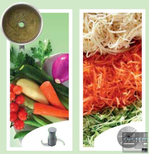 - Декілька простих маніпуляцій дозволяють трансформувати овочерізку в куттер-гомогенізатор