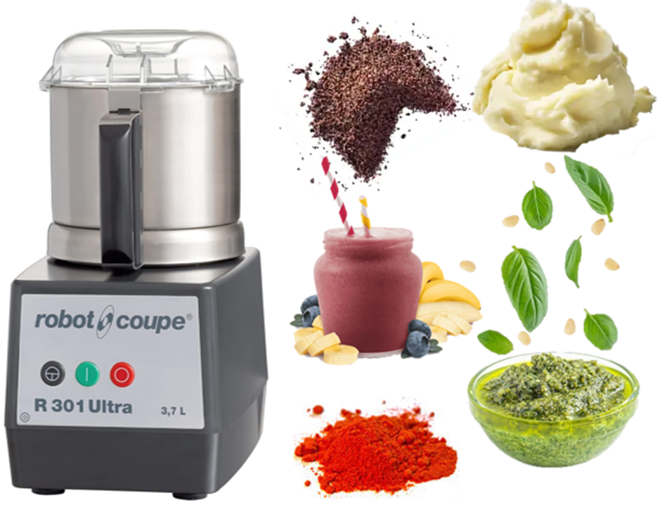Професійний кухонний процесор Robot Coupe R 301 Ultra використовується на підприємствах громадського харчування та торгівлі для всіх видів нарізки, замішування та подрібнення продуктів харчування. Призначений для перемішування та нарізування будь-яким способом овочів, фруктів, м'яса, риби та інших продуктів для приготування величезного асортименту страв. Також використовується для розмелювання та замішування тіста різних сортів, дроблення горіхів, подрібнення зелені, приготування соусів та емульсій.
