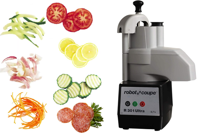 Професійний кухонний процесор Robot Coupe R 301 Ultra використовується на підприємствах громадського харчування та торгівлі для всіх видів нарізки, замішування та подрібнення продуктів харчування. Призначений для перемішування та нарізування будь-яким способом овочів, фруктів, м'яса, риби та інших продуктів для приготування величезного асортименту страв. Також використовується для розмелювання та замішування тіста різних сортів, дроблення горіхів, подрібнення зелені, приготування соусів та емульсій.