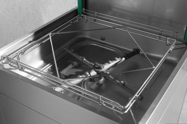 Посудомийна машина, виготовлена з якісної нержавіючої сталі (AISI 304, 1мм). Подвійні двері. Висока якість миття досягається за допомогою насоса з високим тиском, подачі води зверху та знизу. Обробка парою (до 85ºС), електронна система управління, низьке споживання води, промивання при температурі 85ºС. "М'який старт" для запобігання гідроудару. Функція миття холодною водою наприкінці циклу, для охолодження посуду.