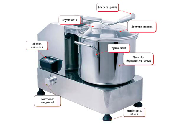 Незважаючи на свої незначні габаритні розміри, дозволяє швидко приготувати величезну кількість страв та напівфабрикатних заготовок. Продукти подрібнюються до стану дрібного кубика, що створює зручність при роботі з фаршуванням. Бокове розташування чаші дозволяє уникнути нагрівання продукту від двигуна.