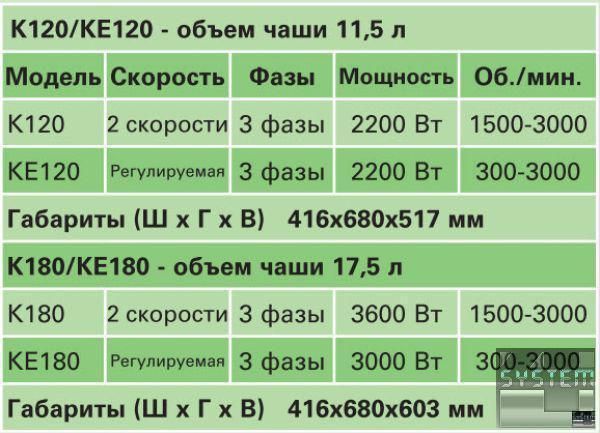 - У моделях KE, що забезпечують гомогенізацію продукту, передбачено плавне регулювання швидкості в діапазоні від 300 до 3000 об./хв.