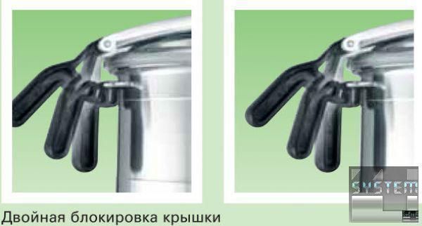 - Подвійний блокатор кришки не допускає розбризкування рідини