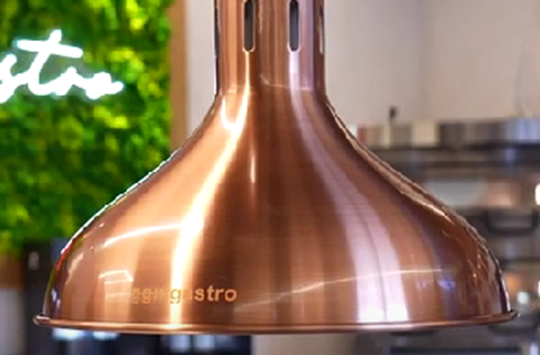 Підвісна лампа для підігріву готових страв – сучасне та зручне рішення для підтримки в гарячому стані готових страв перед подачею на стіл, а також для нагрівання страв на шведськиї столах або кейтерингу. Лампа для підтримки температури їжі використовується у ресторанах, а саме у зонах фінального приготування страв. Має привабливий дизайн, циліндричну форму і легко регулюється від 60 до 180 см.