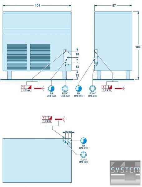 Габаритные размеры, (ДхШхВ) см.: 104,5x57x103