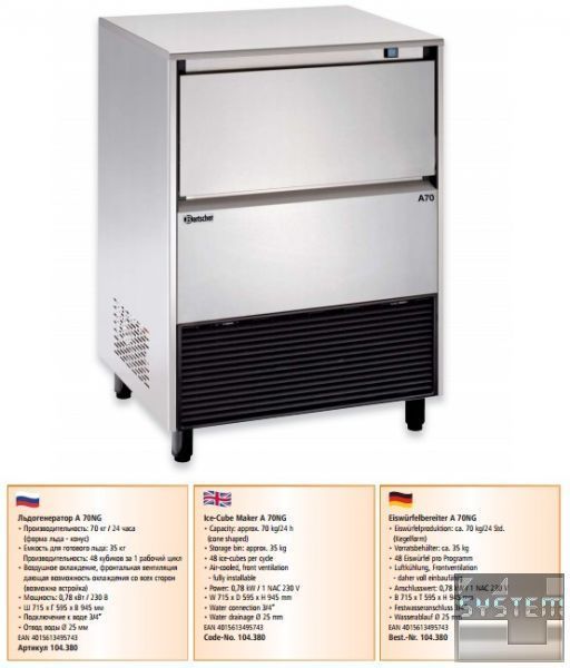 Описание ледогенератора Bartscher А 70NG 104.380: