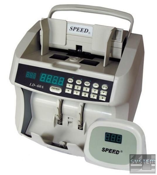 SPEED LD-60А - лічильник банкнот для роботи із середнім потоком готівки. У апарата є чотири швидкості, і він без проблем справляється з грошовими знаками будь-якого ступеня зношеності. На панелі приладу розташовані кнопки детекції по УФ та підсумовування прорахованих грошей. LD-60A має 16 рівнів чутливості УФ-датчика і 16 рівнів чутливості оптичного датчика. Прилад завжди зупинявся на здвоєних (невідповідність по оптичній щільності) і банкнотах, що світяться в УФ-світлі. Апарат при включенні налаштовується по першій купюрі і перевіряє по ній всю пачку. Функція наскрізного підсумовування дозволяє контролювати кількість минулих крізь лічильник грошей. Лічильник здатний працювати до 8 годин безперервно. До нього можна підключати виносний дисплей для зручності роботи в обмінних пунктах, а також під час роботи з клієнтами.