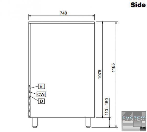 Професійний льодогенератор має габаритні розміри: 840мм (довжина), 740мм (глибина), 1075мм (висота).