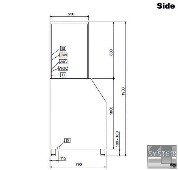 Професійний льодогенератор має габаритні розміри: 870мм (довжина), 790мм (глибина), 1800мм (висота).