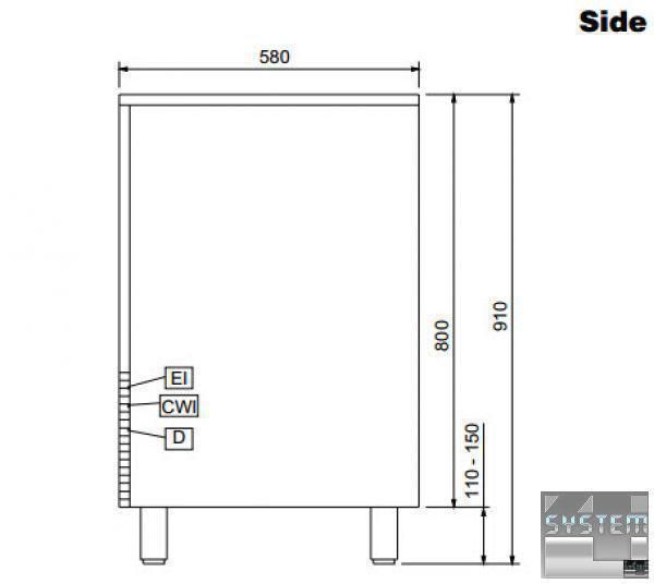 Професійний льодогенератор має габаритні розміри: 500мм (довжина), 580мм (глибина), 800мм (висота).