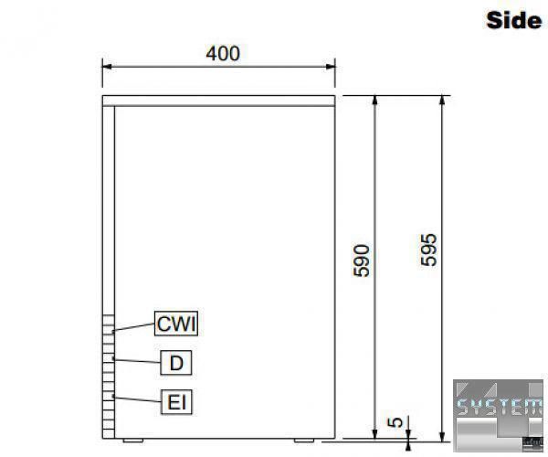Професійний льодогенератор має габаритні розміри: 345мм (довжина), 400мм (глибина), 590мм (висота).