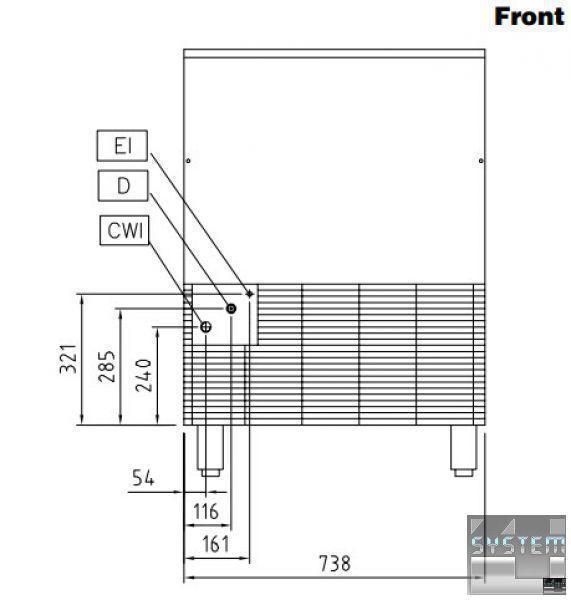 Професійний льодогенератор має габаритні розміри: 738мм (довжина), 600мм (глибина), 920мм (висота).