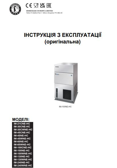 Інструкція та Каталог з експлуатації льодогенератора Hoshizaki серії IM.