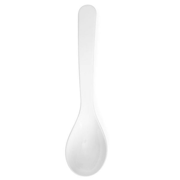 Ложка салатна, виготовлена з пластику, білого кольору.