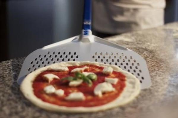 Перфорована поверхня забезпечує низьке тертя і відводить муку, запобігаючи її прилипання до нижньої частини піци, яка може обпектися.