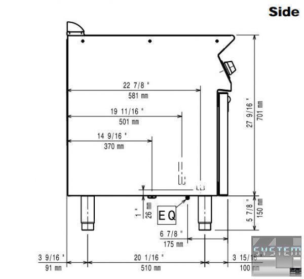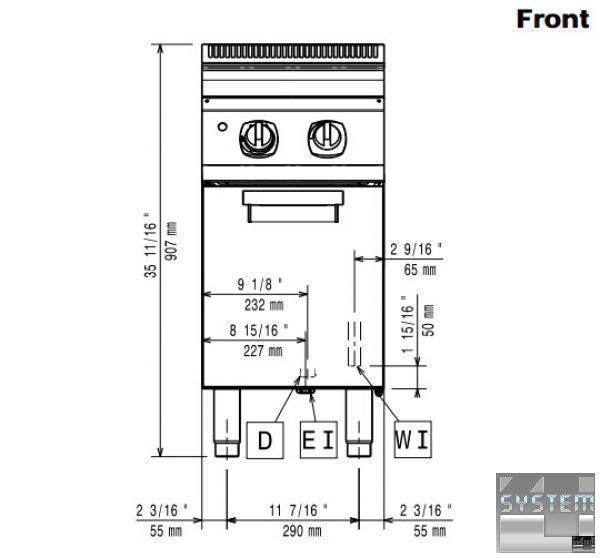 Універсальний варильний апарат Electrolux e7pced1kf0 має одну ванну об'ємом 24,5л, систему нагрівання з інфрачервоними тенами, систему плавного регулювання потужності нагрівання EnergyControl, оснащений краном подачі води, виконання на закритій основі. Має підлоговий спосіб розташування, товщина металу робочої поверхні апарату 1,5 мм. Макароноварка має габаритні розміри: 400мм (довжина), 730мм (глибина), 850мм (висота) та важить 45кг. Пристрій живиться від трифазної мережі з напругою 400В та частотою 50 Гц. Оснащена індикатором роботи та контролю напруги. Робоча поверхня із нержавіючої харчової сталі AISI 304 з поліруванням Scotch Brite .
