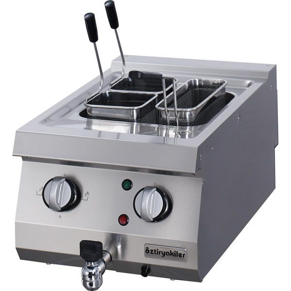 Місткість макароноварки для води цільнотягнута, виконана з нержавіючої сталі.