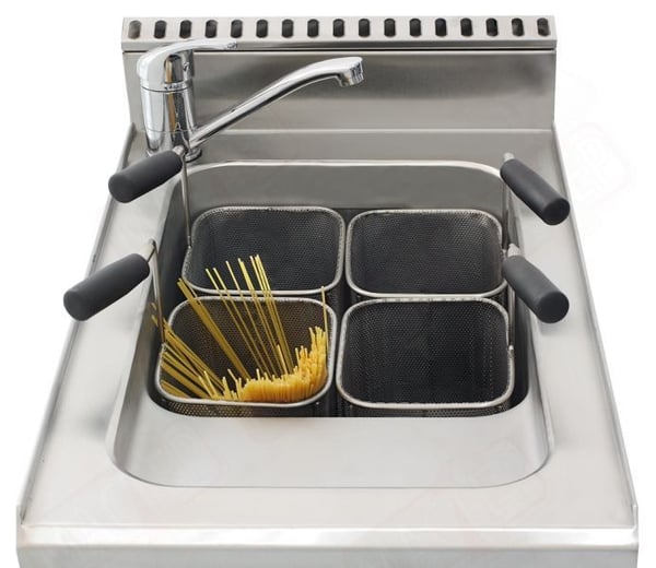 Макароноварка ідеально підходить для одночасного приготування широкого асортименту різних видів виробів із тіста: пасти, макарони, вермішель, локшина, спагетті, пельмені та вареники. Це обладнання незамінне на кухнях ресторанів із середземноморською, насамперед італійською, кухнею.