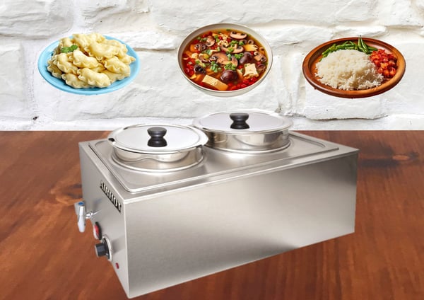 Марміт AIRHOT SB-2 призначений для підтримки та зберігання готових перших та других страв у гарячому стані. Це незамінне теплове обладнання для підприємств громадського харчування та при виїзному обслуговуванні. Працює за принципом парової лазні, коли вода нагрівається ТЕНом, а пара, що утворюється при нагріванні, підігріває місткість гастроємності. Це дозволяє рівномірно нагрівати ємності без пересушування і пригорання страв, що підігріваються. Висота марміту з кришкою 328 мм.