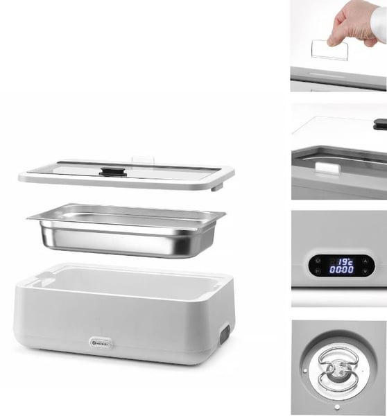 Корпус із термостійкого поліпропілену. Знімний контейнер GN1/1 (H) 100 мм з нержавіючої сталі AISI 304, легко чиститься.