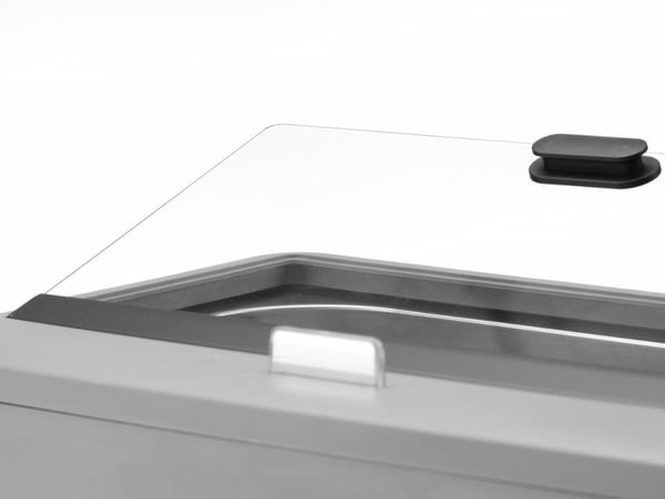 Спеціальна двокомпонентна конструкція кришки зменшує втрати тепла при відкриванні.Також на кришці вбудовано тримач для карток із назвами продуктів.