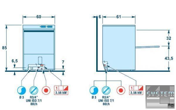 Технические характеристики машины посудомоечной фронтальной Angelo Po KD60ME: