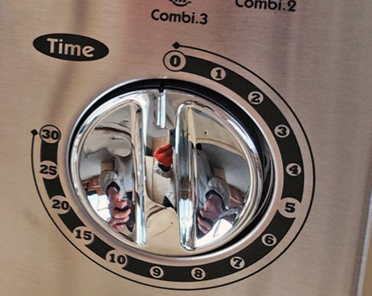 Електромеханічна панель керування, що регулює час, температурний режим та рівень потужності приготування.