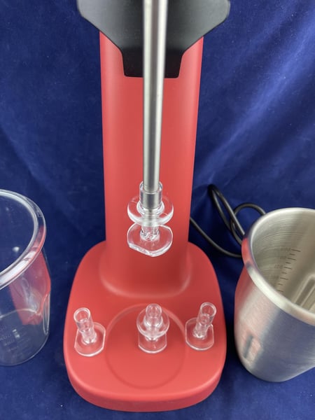 Поставляється з чашею для змішування з нержавіючої сталі (0,95 л) та чашкою для змішування з полікарбонату (0,9 л), а також 2 наборами по 2 мішалки.