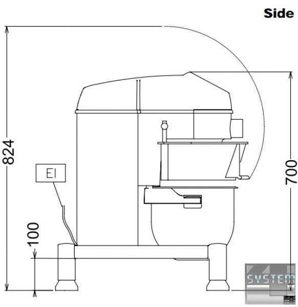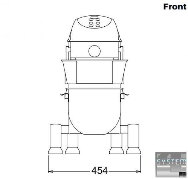 - Продуктивність при вимішуванні тіста (гак): 3,5 кг борошна (вміст рідини 50%)