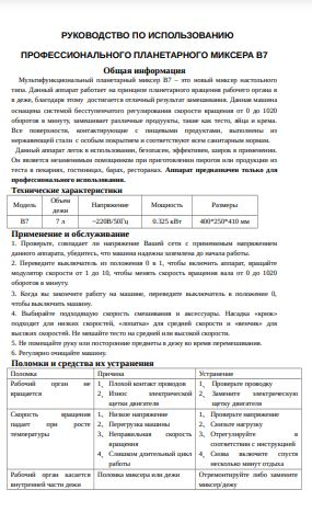Міксер має потужний двигун, який дозволяє без особливих труднощів перемішувати найбільші обсяги тіста та продукції. Конструкція міксера дозволяє легко і швидко очистити її та обслуговувати сам міксер.