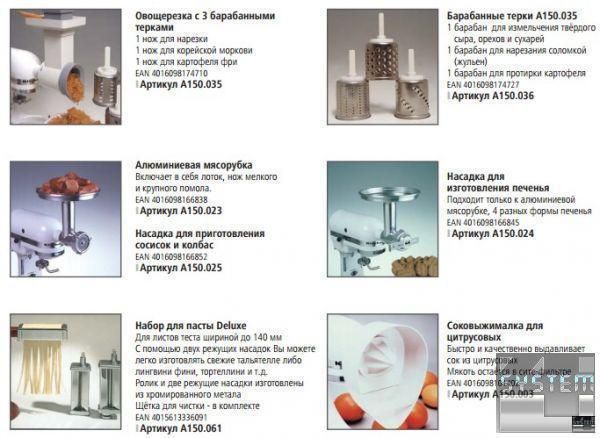В сочетании с этим миксером планетарным можно использовать насадки Kitchen Aid из актуального ассортимента в каталоге Bartscher. Артикулы: А150.035, А150.036, А150.023, А150.025, А150.024, А150.061, А150.003, А150.000, А150.019, А150.002, А150.006, А150.019, А150.029, А150.004, А150.028, А150.044, 150.0509, А150.037, А150.038, А150.012, А150.013, А150.020, А150.021, А150.016, А150.018, А150.014, А150.017. (смотрите фото)