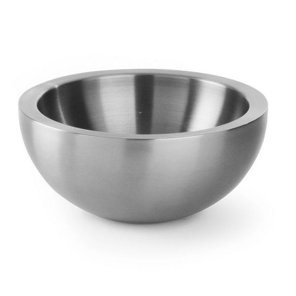 Ця миска виконана з нержавіючої сталі. Має подвійні стінки.