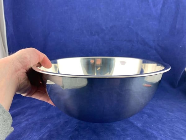 Кругла миска виконана з високоякісної нержавіючої сталі 18/10, не вбирає запаху та смаку продуктів.