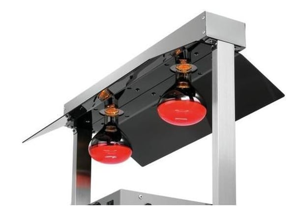 Це дає подвійний тепловий ефект - дві інфрачервоні лампи і склокерамічні нагрівальні пластини, що регулюються окремо, підтримують їжу теплою при індивідуально налаштованій температурі.