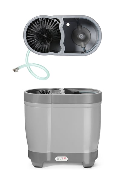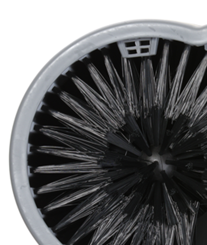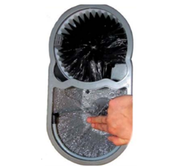 Мийна камера виконана з ABS-пластику, щетинки щітки з поліпропілену (середня щітка знімається), має невеликі габарити, тому миючий засіб витрачатиметься у невеликих кількостях.