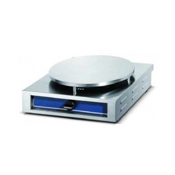 Матеріал, з якого виготовлена млинниця - емальований чавун, а корпус з нержавіючої сталі. Температура поверхні смаження задається і підтримується автоматично. За рахунок того, що робоча поверхня плити виконана з чавуну, це дозволяє при смаженні використовувати мінімальну кількість масел. Млинна плита легка у використанні. Діаметр поверхні складає 400 мм. Температурний режим – від 50°С-300°С. Потужність роботи плити - 3,00 кВт/220В