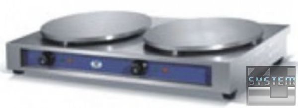 Дана модель двопостова. Зручна професійна млинець для закладів із середньою кількістю відвідувачів. Діаметр 2-х поверхонь обладнання складає 400 мм. Матеріал – емальований чавун. Корпус апарату із нержавіючої сталі. Завдяки своїм невеликим габаритам він стане компактним помічником на кухні. Проста у використанні. Країна-виробник Італія.