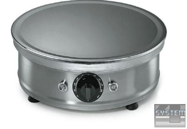 Призначена для смаження млинців безпосередньо на робочій поверхні. Модель має збільшену потужність. 1 робоча поверхня. Робоча поверхня виконана з чавуну із спеціальним покриттям, яке дозволяє смажити з мінімальною кількістю жиру. Корпус із нержавіючої сталі. Терморегулятор дозволяє встановлювати температуру від 0 до 300 С. Оснащена піддоном для зберігання (підтримки у теплому стані) готового продукту.