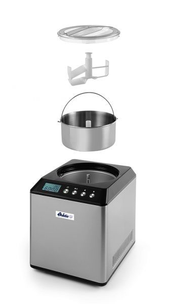 Контейнер для морозива виконаний із нержавіючої сталі, кришка із прозорого полікарбонату із замком типу «Twist-Lock». Є вбудований компресор із повітряним охолодженням. Функція підтримки температурного режиму протягом 2 годин після закінчення роботи обладнання для збереження консистенції приготовленого продукту.