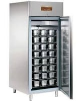 Компактний фризер для джелато для професійного використання зі знімною чашею з нержавіючої сталі та функцією зберігання. Корпус виготовлено із нержавіючої сталі, ніж також із нержавіючої сталі з регульованими скребками