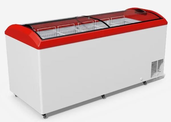 Морозильник оснащений гнутим склом та енергозберігаючим LED-підсвічуванням, корона обладнання виготовлена з міцного та удароміцного ABS — пластика із захисним покриттям РММА.