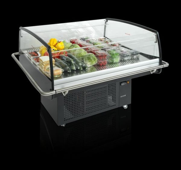 Внутрішнє освітлення та скляні стінки вигідно надасть викладку товару і цим наочно дозволить визначити місце розташування потрібного продукту. А відкритий верх ідеально підходить для легкого доступу до продуктів.