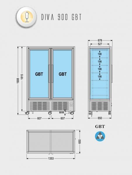 Технічні характеристики холодильної шафи Tecfrigo DIVA 900 GBT: