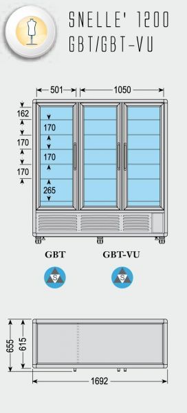 Технічні характеристики холодильної шафи Tecfrigo 1200 gbt/gbt-vu