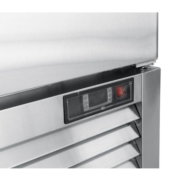 Дана морозильна шафа виготовлена з високоякісної нержавіючої сталі. Усередині камери розташовуються 3 полиці, розміром GN 2/1, з максимальним навантаженням на полицю до 40 кг.