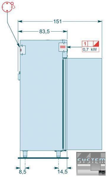 Несучий корпус із поліуретановою ізоляцією товщиною 75 мм без використання CFC. Реверсивні двері оснащені системою автоматичного закриття при відкритті до 90°. Ніжки з нержавіючої сталі AISI 304, що регулюються по висоті. Система кріплення решіток зі сталі інокс AISI 304, що легко знімається, на 20 позицій. Є моделі з глибиною 73,5 см (мод. ...60... ; ...130...). Робочі температури: 0/+10°C; -22/-15°C. Є моделі з двома роздільними секціями, що охолоджуються двома незалежними моторними блоками. Цифрова панель керування термометром-термостатом. Автоматичне розморожування з автоматичним випарюванням конденсату. Система охолодження вентильованого для рівномірного розподілу холоду всередині камери. В оснастці: три пари напрямних із сталі інокс AISI 304 та три грати для кожної секції.