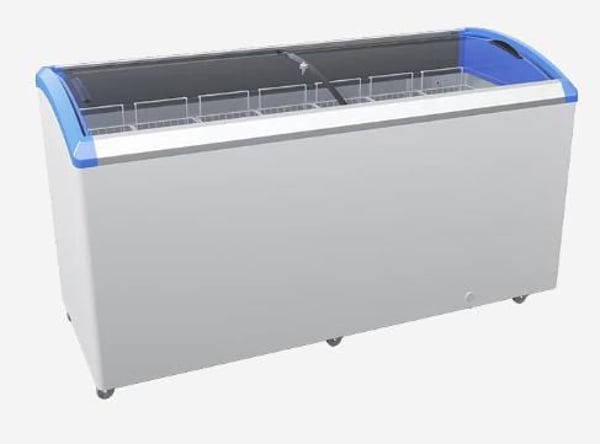 Морозильник оснащений гнутим склом та енергозберігаючим LED-підсвічуванням, яке вбудоване в корону і не займає додаткового обсягу та не перешкоджає завантаженню продукції.