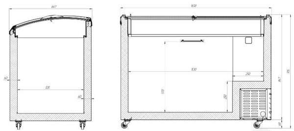 Заморозка в морозильному ларі проводиться рівномірно з усіх боків, тоді як охолодження вітрини розташоване лише з одного боку. Устаткування енергоефективне та надійно працює при температурі навколишнього середовища до +35°C.