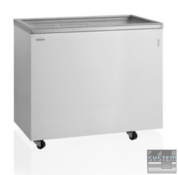 Засклена конструкція кришки камери вигідно надасть викладку товару і цим наочно дозволить визначити місце розташування потрібного продукту, не відчиняючи дверцят - це дозволяє зберегти внутрішній температурний режим морозильної камери Tefcold. Горизонтальна кришка скрині оснащена склом , яке має спеціальне антизапотівне покриття. А на внутрішній стороні скла нанесено металооксид, який перешкоджає проникненню теплових променів усередину робочої камери.