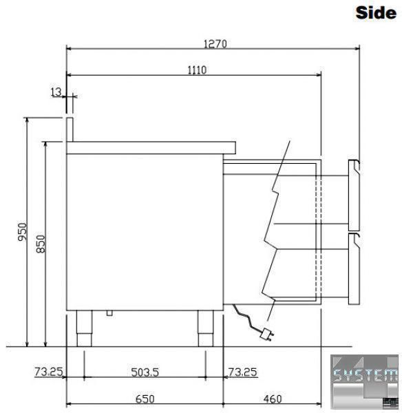 Професійний стіл з охолодженням має габаритні розміри: 1274мм (довжина), 700мм (глибина), 850мм (висота).